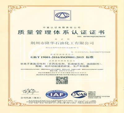 荊州市隆華石油化工有限公司是由原湖北省沙市石油化工廠(成立于1966年)改制后組建的有限責任公司,原湖北省沙市石油化工廠是原國家化工部、石油部定點生產農藥乳化劑、原油破乳劑專業(yè)廠家之一,改制后新公司注冊資金7000萬人民幣。公司位于三國故里,荊州市經濟技術開發(fā)區(qū)。荊州沙市機場便捷快達,漢宜高鐵比鄰而過,黃金水道長江相伴!